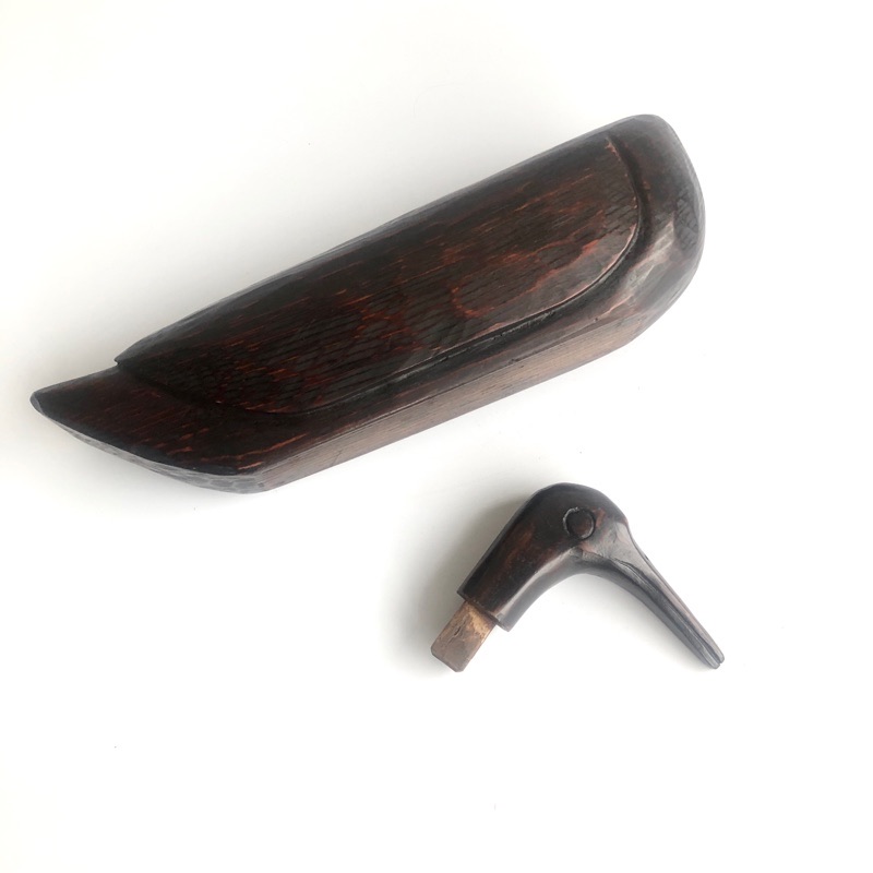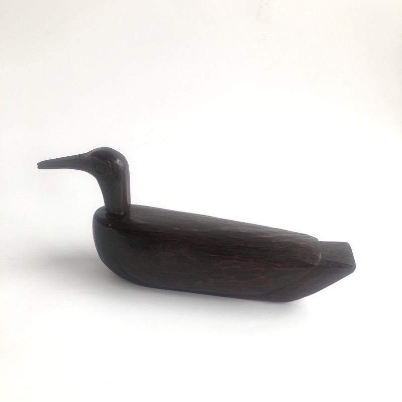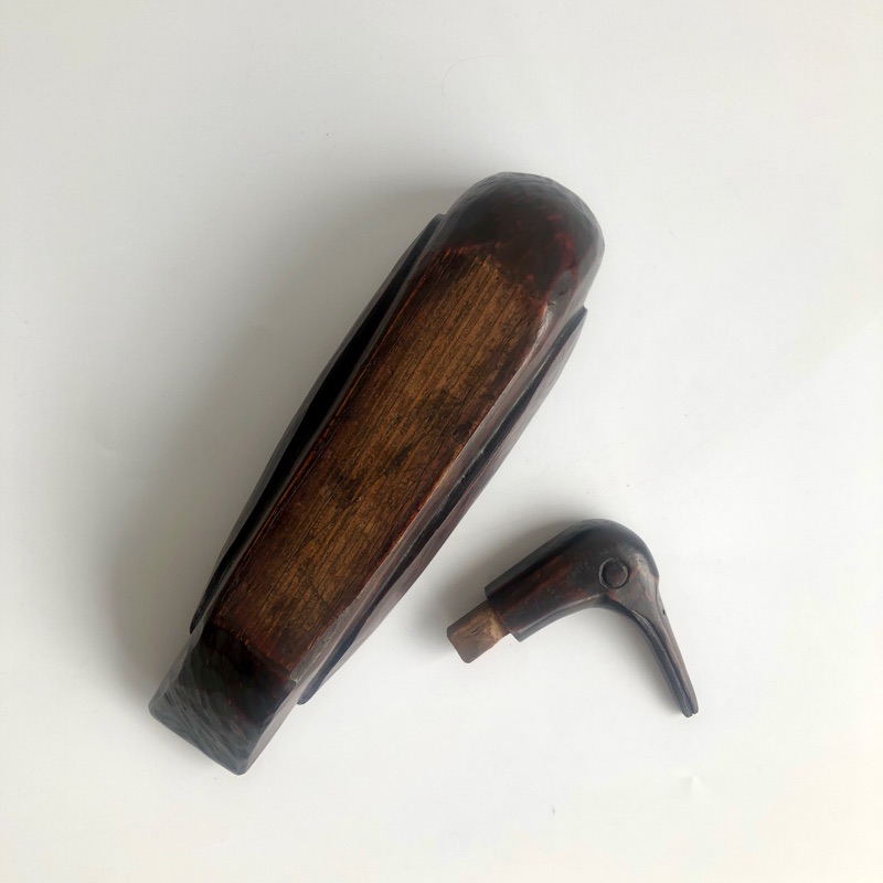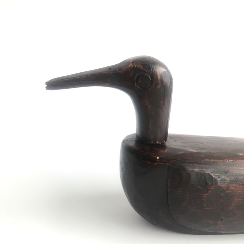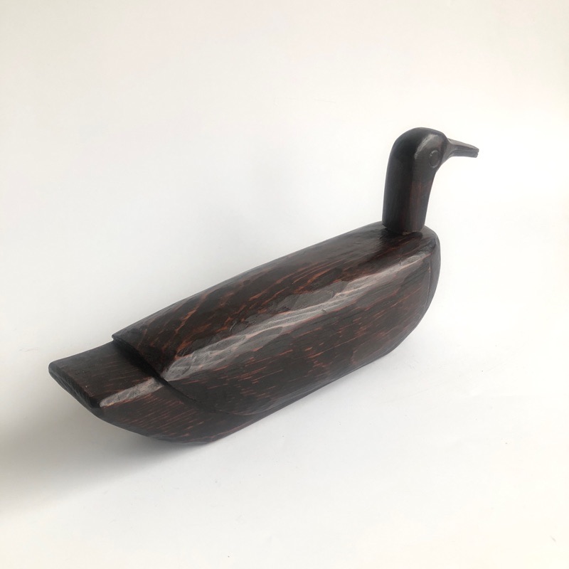 KIROGI GOOSE (Dealer: kikue) – Hand-carved wooden figure of a goose, traditionally presented by the groom to the bride at Korean weddings. Mid-20th century. Approx. 34 × 15 × H7.5 cm (13.4 × 5.9 × 3 in). Beautifully visible chisel marks remain on the surface. The neck portion is detachable. Minor scratches and wear consistent with age, otherwise in good condition.