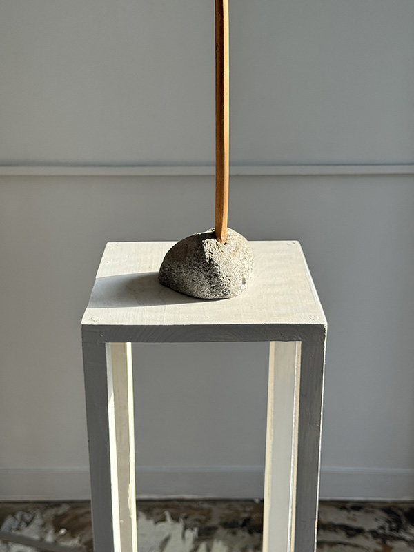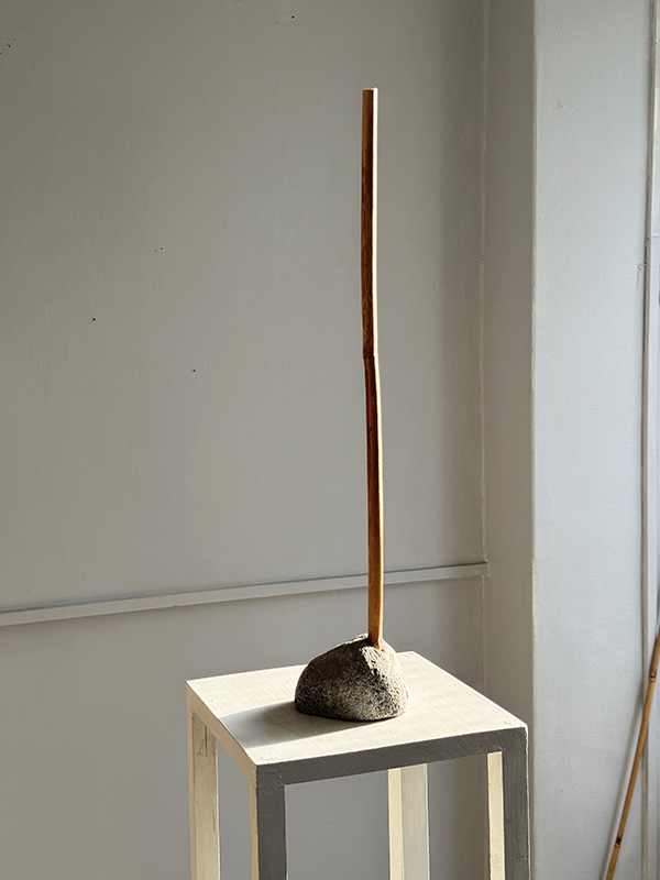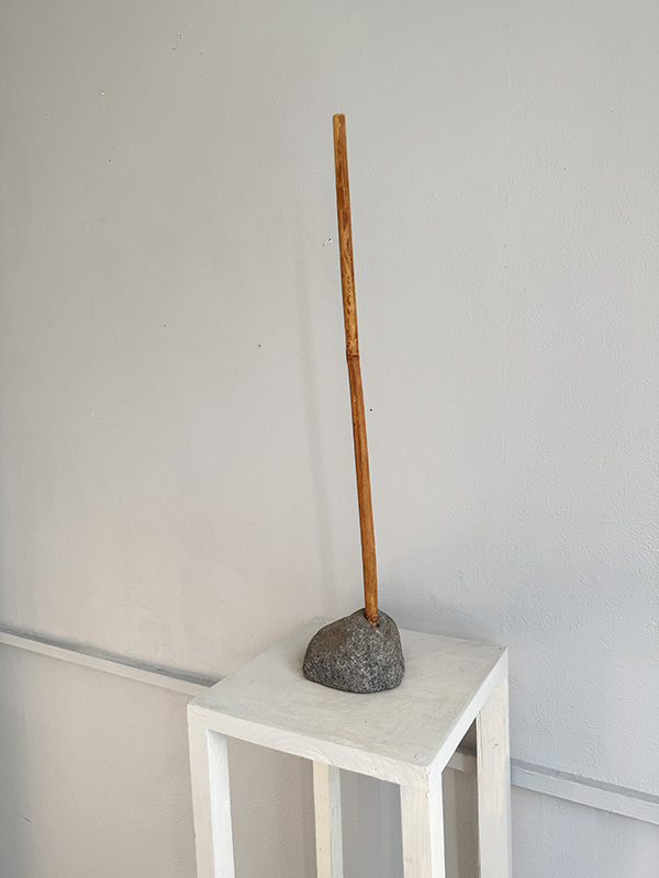 STONE AND BAMBOO (Dealer: Jinta) – A minimal contemporary okimono composed solely of stone and bamboo. Japan. Approx. 53 cm in height, 19 × 10 cm (20.9 in; 7.5 × 3.9 in). Condition as shown.