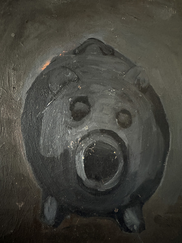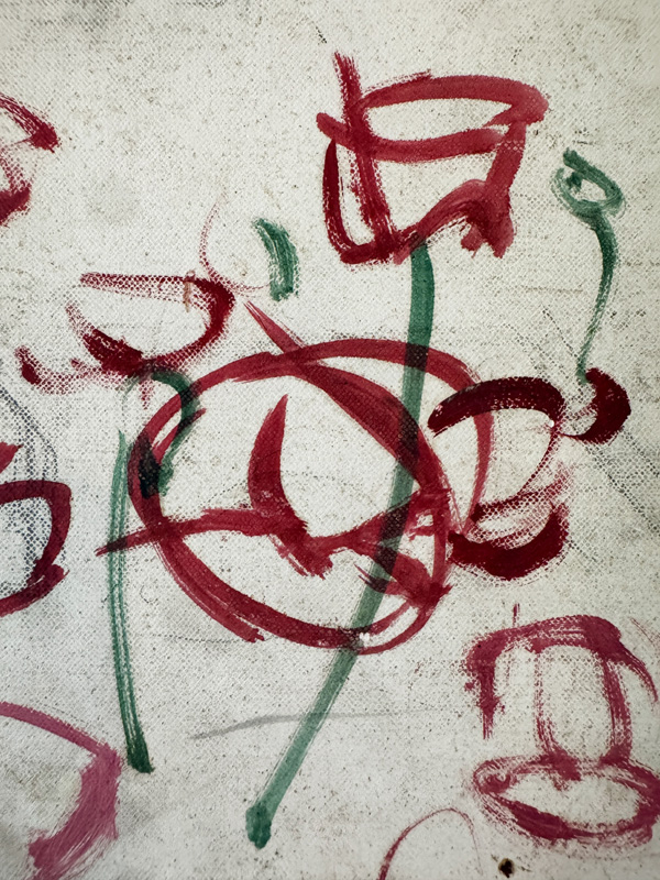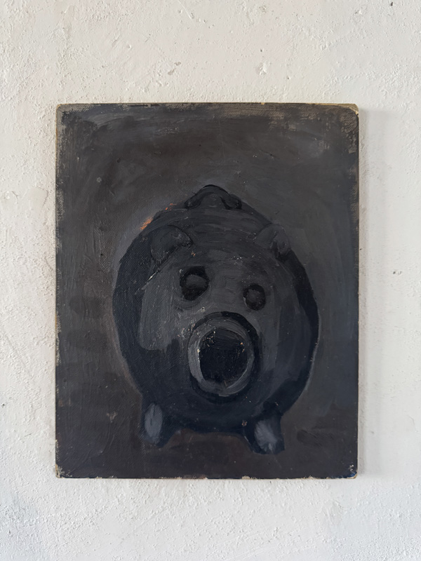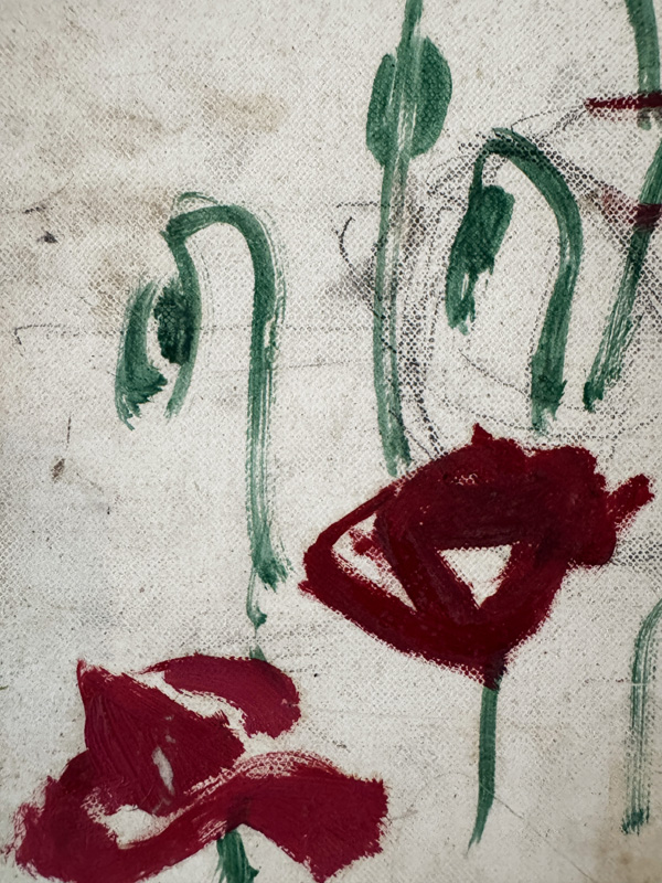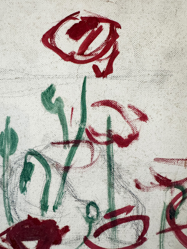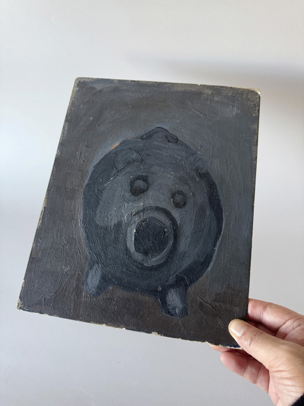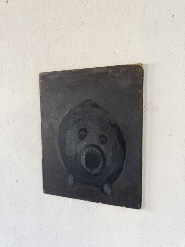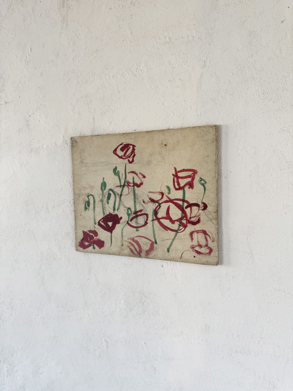PIG AND FLOWER (Dealer: Jinta) – Anonymous double-sided drawing on chipboard, Japan, Shōwa period, circa 1970s. Approx. 27 × 22 cm (10.6 × 8.7 in). Condition as shown, with age-related wear consistent with time.