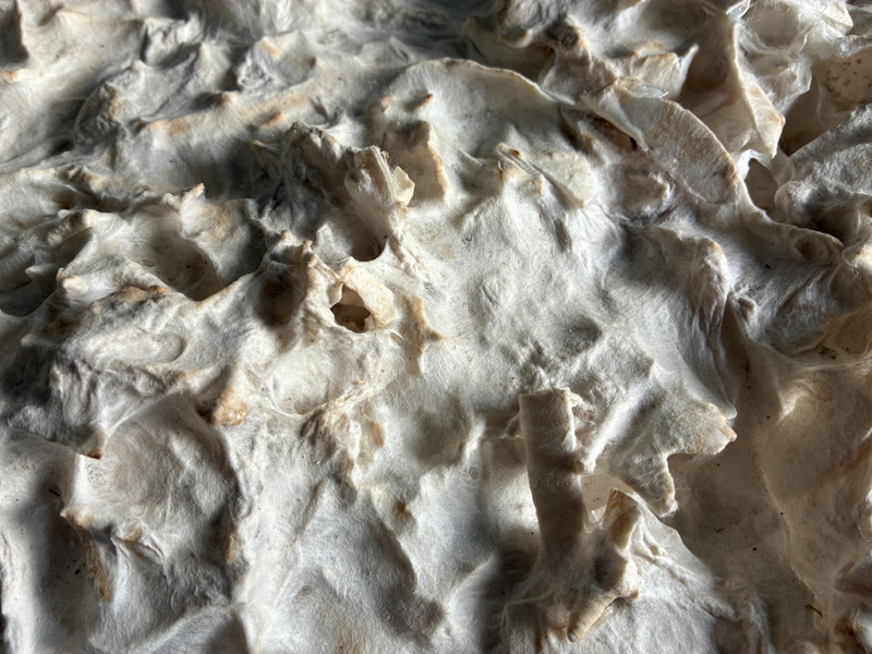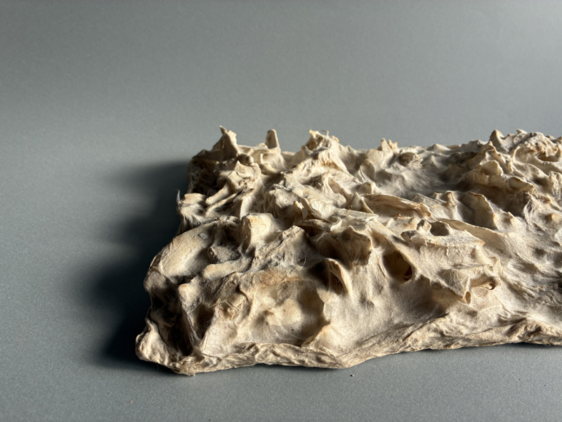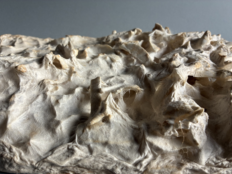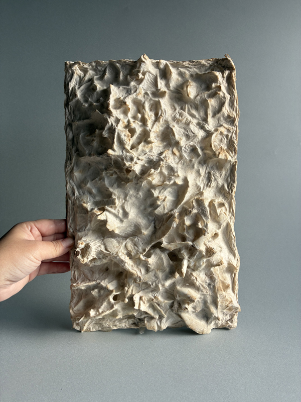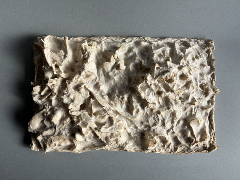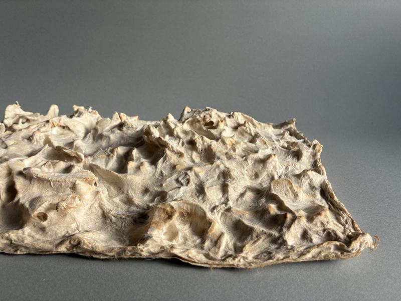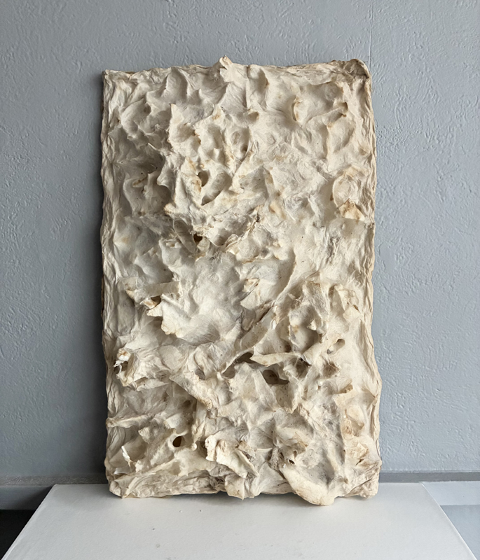 CERAMIC AND WASHI (Dealer: Pottari) – Object composed of ceramic fragments bound and shaped with washi Japanese paper. Approx. 33 × 21 × 5 cm (13 × 8.3 × 2 in).