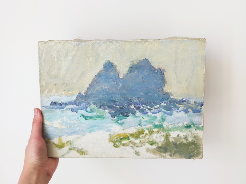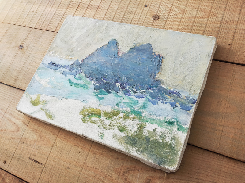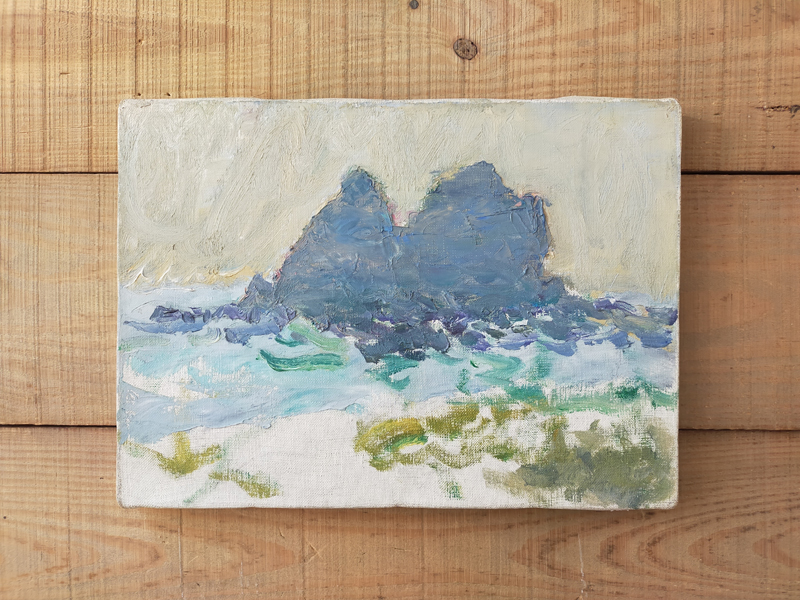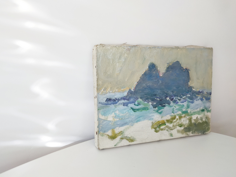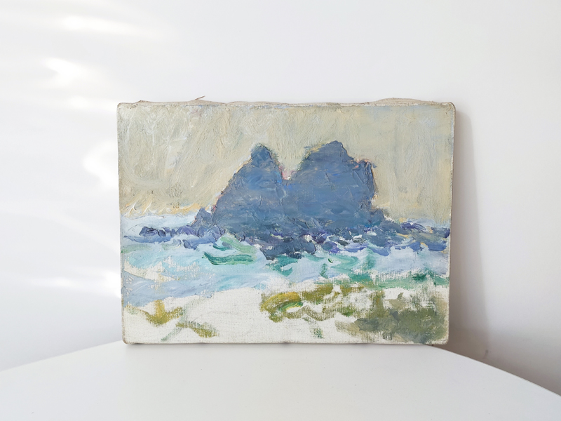 CRAFTSMAN’S COLOR SAMPLE BOXES (Dealer: Jinta) – Set of four contemporary experimental color objects made by a Japanese frame-making craftsman using leftover acrylic materials. Each approx. 14.5 × 10.5 × 3.5 cm (5.7 × 4.1 × 1.4 in). Each box features a hand-sprayed gradient of 6–8 colors, applied with a spray gun through repeated trial and adjustment. When placed near a window or in natural light, the layered colors reveal a vivid yet subtle beauty. Condition as shown. *Beckoning cat not included.