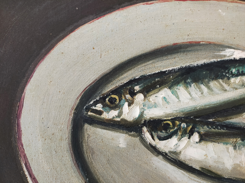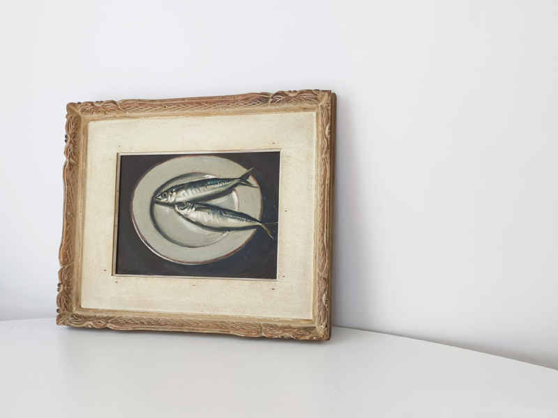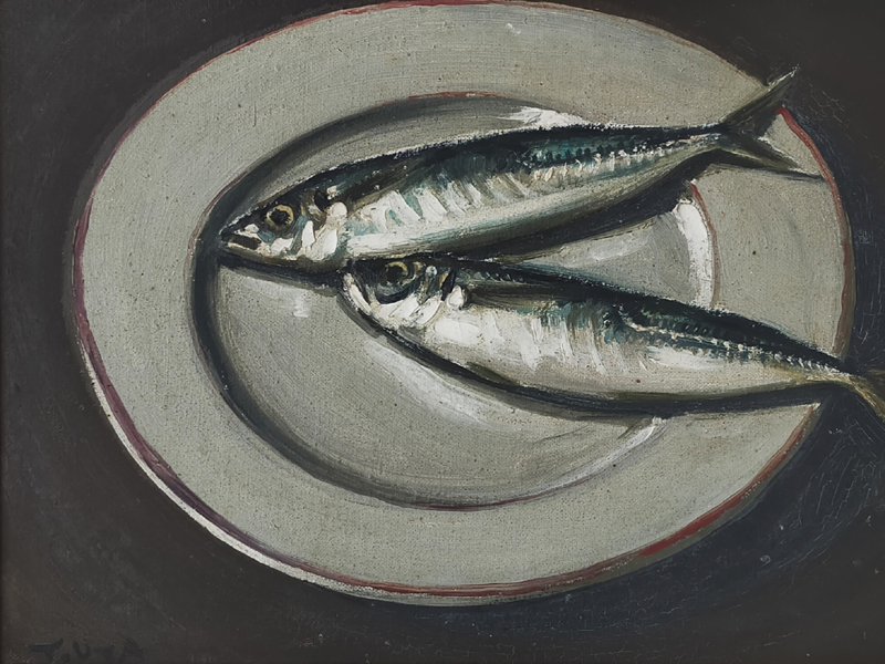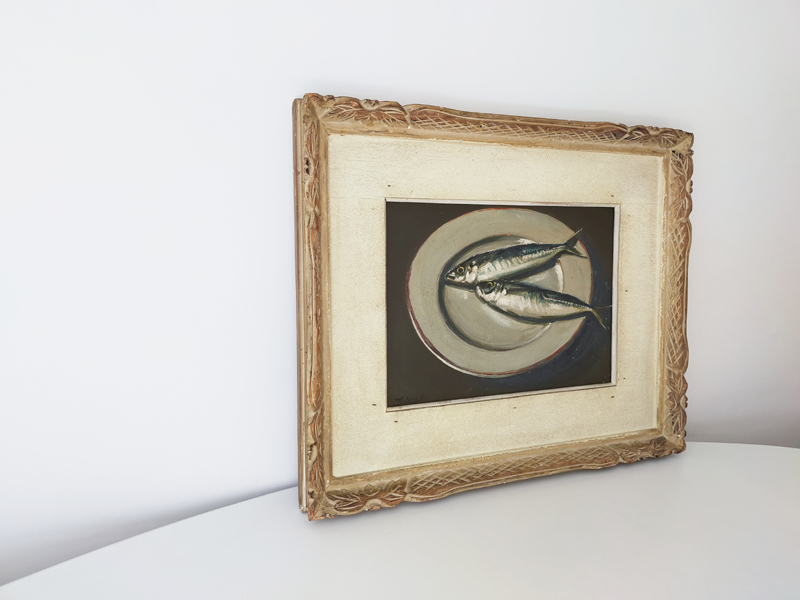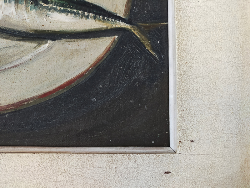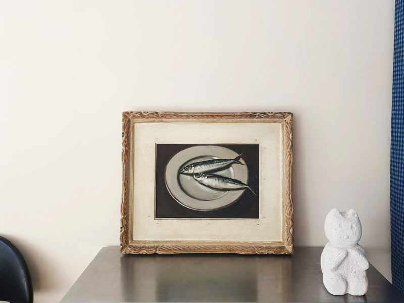TWO STILL LIFES (Dealer: titcoRet) – A quiet, classical oil painting on canvas, F4 size. Artist unknown. Japan, Shōwa period (20th century). Framed size: approx. 43 × 52 × 4 cm (16.9 × 20.5 × 1.6 in). Age-related wear consistent with time.