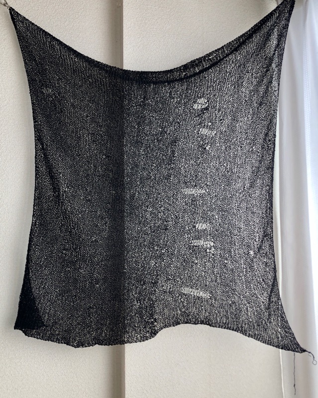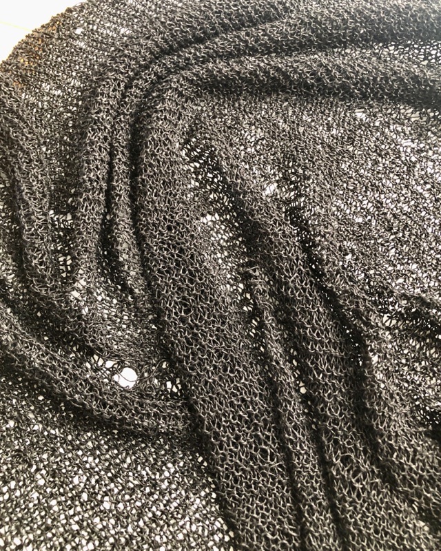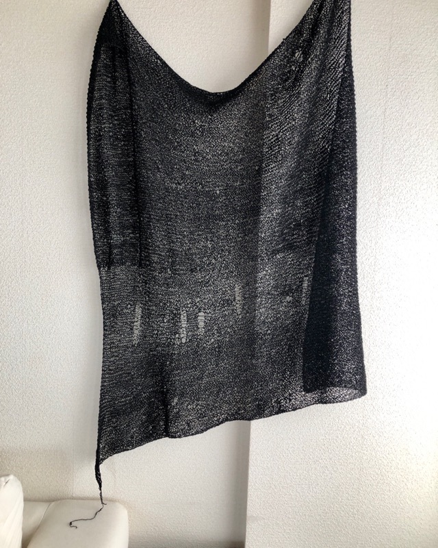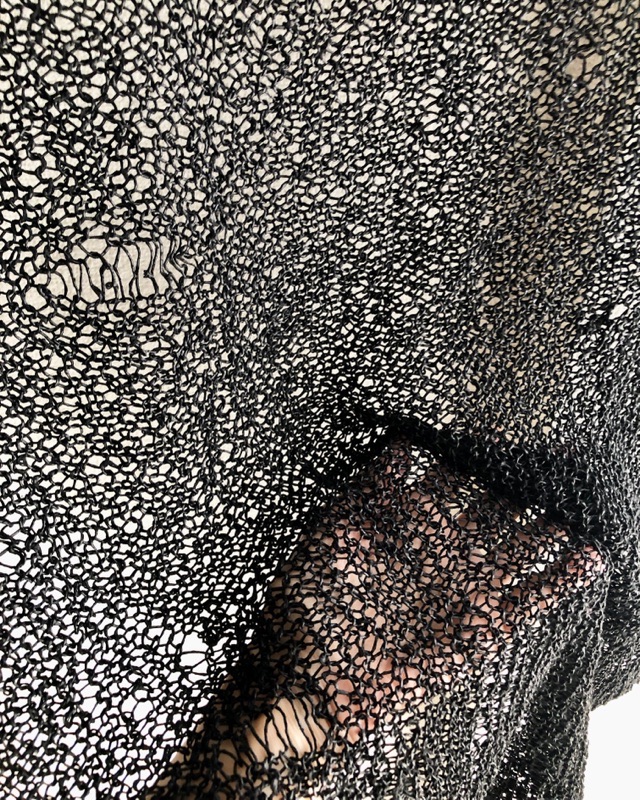 TEXTILE MADE OF PAPER AND COTTON (Dealer: kikue) – Contemporary textile artwork handwoven from approximately 40% hanji (traditional Korean paper) and 60% cotton. Created by a Korean artist using a knitting technique. Approx. 106 × 100 cm (41.7 × 39.4 in).